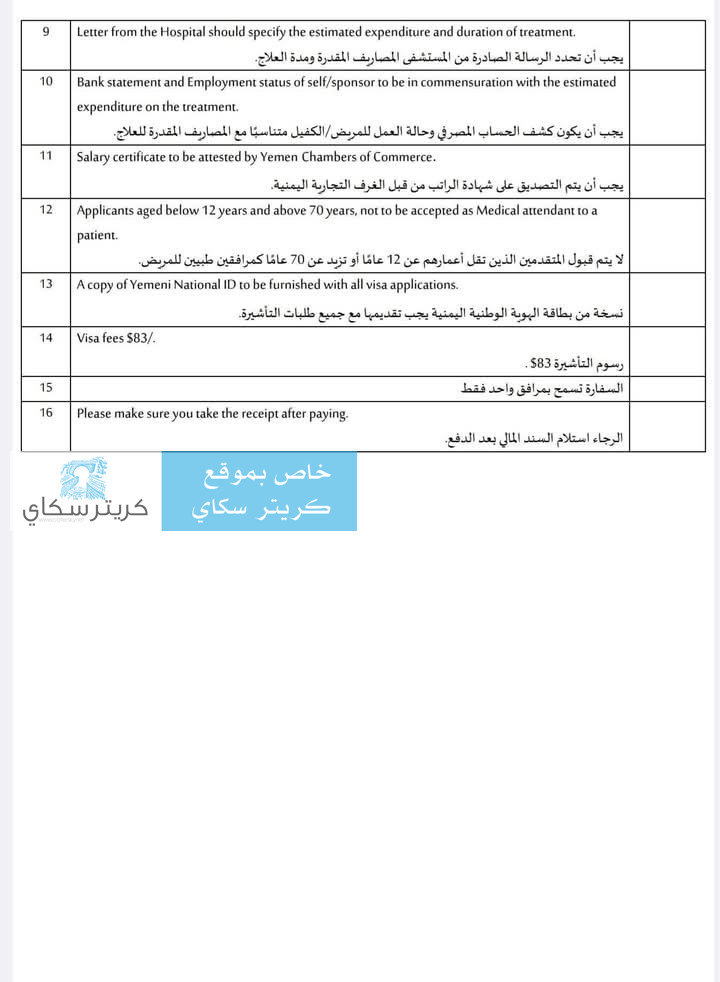 كريتر سكاي ينفرد بنشر متطلبات استخراج الفيزا المرضية عبر السفارة الهندية بعدن