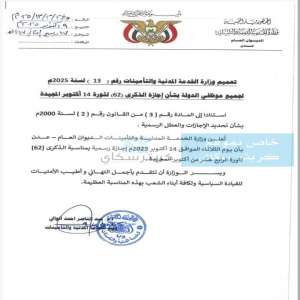 أعلنت وزارة الخدمة المدنية والتأمينات في العاصمة عدن، في تعميمها رقم (13) لسنة 2025م، عن منح جميع ال...