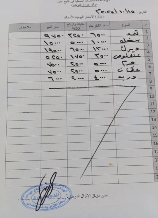 أعلنت الهيئة العامة للمصائد السمكية في العاصمة عدن، صباح اليوم، عن استقرار نسبي في أسعار الأسماك، مع تسجيل تفاوت بسيط في بعض الأصناف نتيجة تباين كميات العرض والطلب في الأسواق المحلية.