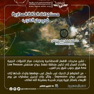 الأرصاد الجوية تكشف عن تكون منطقة ضغط جوي منخفض فوق جنوب شرق بحر العرب