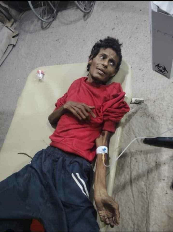 أفاد شهود عيان لكريتر سكاي بأن الشباب قاموا بجهود حثيثة لإنقاذ الشاب، الذي يظهر في الصورة وهو يعاني من هزال شديد ويتلقى العلاج عبر الوريد: