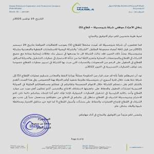 كشفت وثيقة رسمية صادرة عن شركة بترومسيلة للاستكشاف وإنتاج البترول، موجهة موظفي قطاع (5) النفطي بمحا...