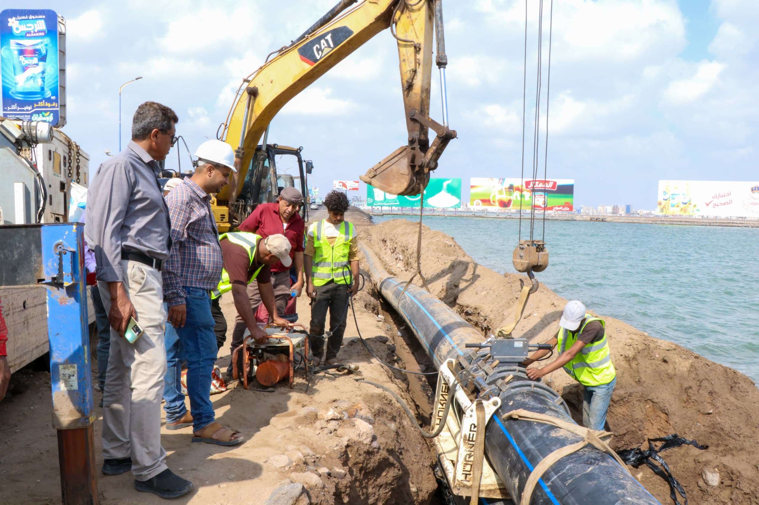 ويتضمن المشروع إعادة تأهيل خط المياه الرئيسي عبر تركيب مواسير بقطر 24 بوصة وضغط 16 بارًا، وبطول إجمالي يبلغ 1800 متر، منها 1400 متر في الخط البحري (خط الجسر) بمديرية خورمكسر، و400 متر في المنطقة الواقعة أمام محمية الحسوة الطبيعية بمديرية المنصورة.
