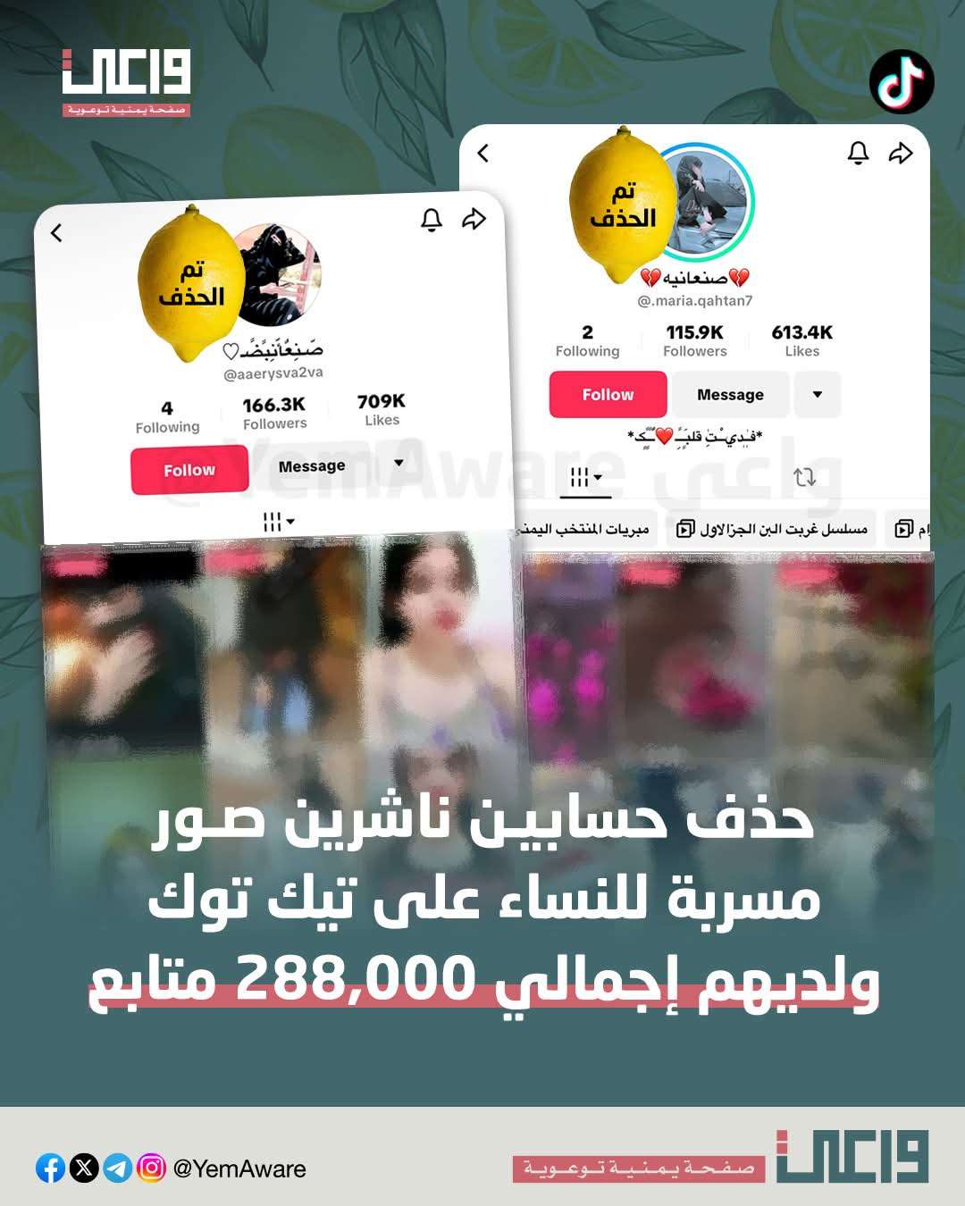 أعلن فريق واعي استمراره في حملته ضد الحسابات التي تنشر صورًا مسرّبة لنساء يمنيات مؤكدًا أن *السلامة والخصوصية خط أحمر لا يقبل المساومة