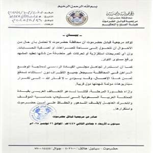 قبائل حضرموت تعلن هذا الامر بشان التحشيد العسكري