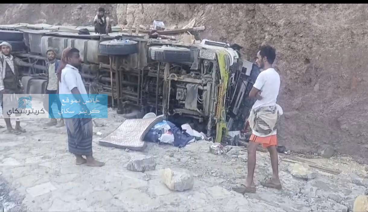 افاد مواطنون لكريتر سكاي بوفاة سائق قاطرة عقب انقلابها بالعرقوب بابين صباح اليوم