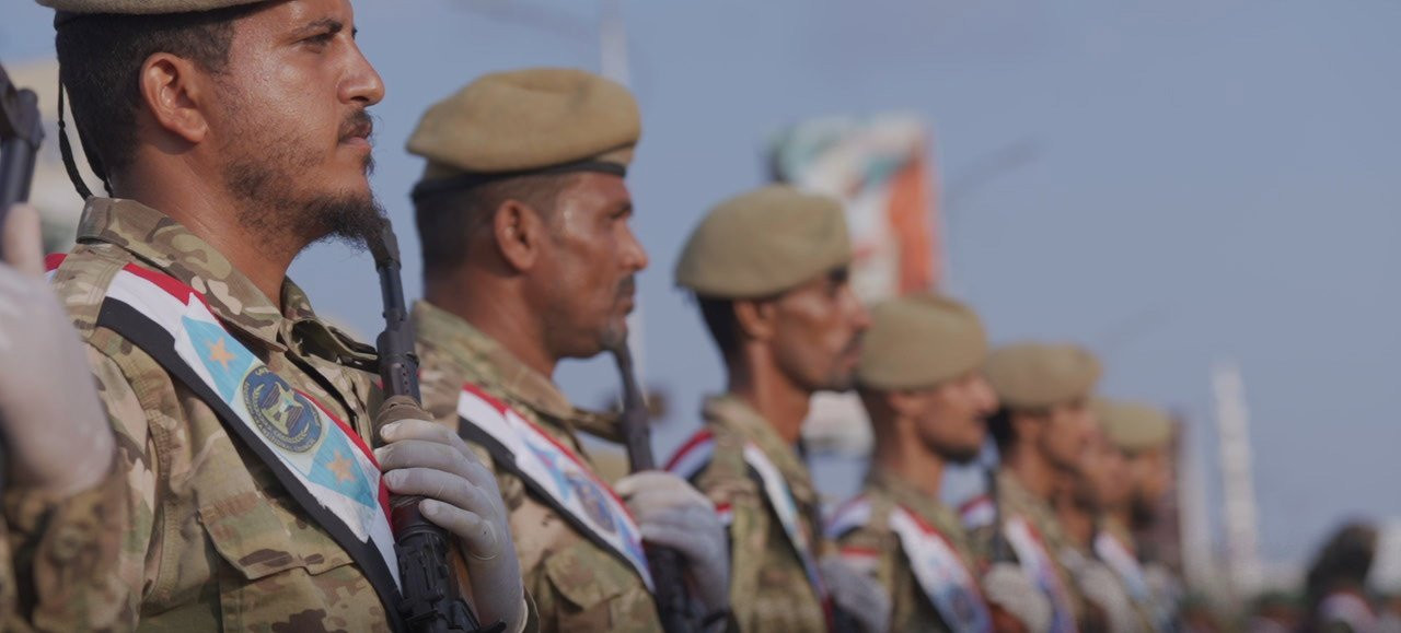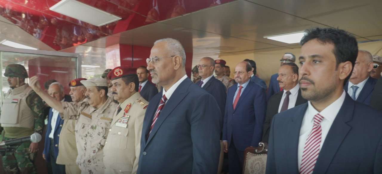 وظهر وزير الدفاع الداعري ووزير الخارجية الزنداني في المنصة بجانب عيدروس الزبيدي