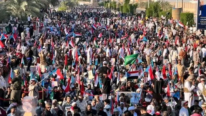 احتشد الآلاف من أبناء محافظة حضرموت في مدينة سيئون عصر اليوم الأحد.