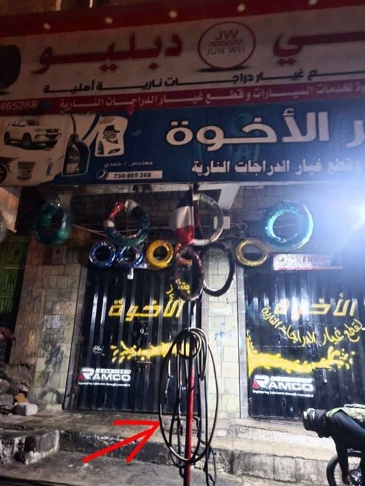 في لفتة إنسانية تستحق الثناء، ترك صاحب "بنشر الأخوين" الواقع أعلى جولة سنان باتجاه الساحة في مدينة تعز، بيب الهواء الخاص بالسيارات متاحاً أمام محله طوال الليل.