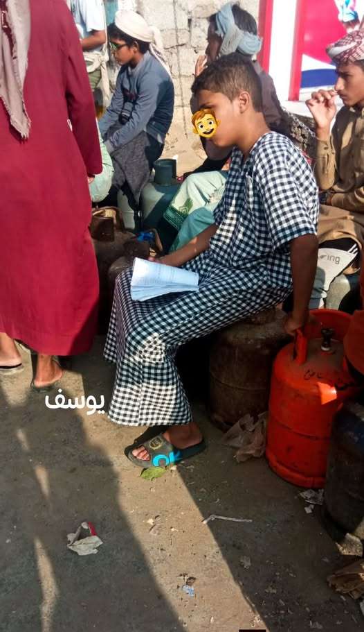 شهدت إحدى محطات الغاز المنزلي في مدينة عدن، اليوم، مشهدًا لافتًا يعكس حجم الأعباء المعيشية التي تعانيها الأسر، حيث رُصد طفل في المرحلة الإعدادية وهو يذاكر دروسه داخل طابور طويل للمواطنين المنتظرين الحصول على أسطوانة غاز.