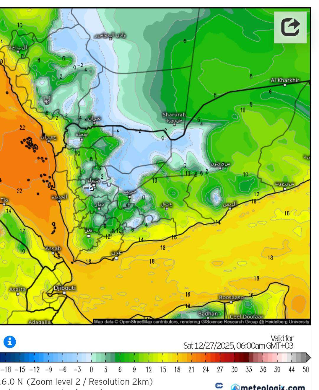 وأوضح أن الحالة العامة للأسبوع القادم ستشهد استمرار الأجواء بين الباردة والمعتدلة، مع استقرار درجات الحرارة الصغرى عند نحو 3 درجات مئوية فوق الصفر، الأمر الذي يقلل من احتمالات الانجماد بإذن الله.