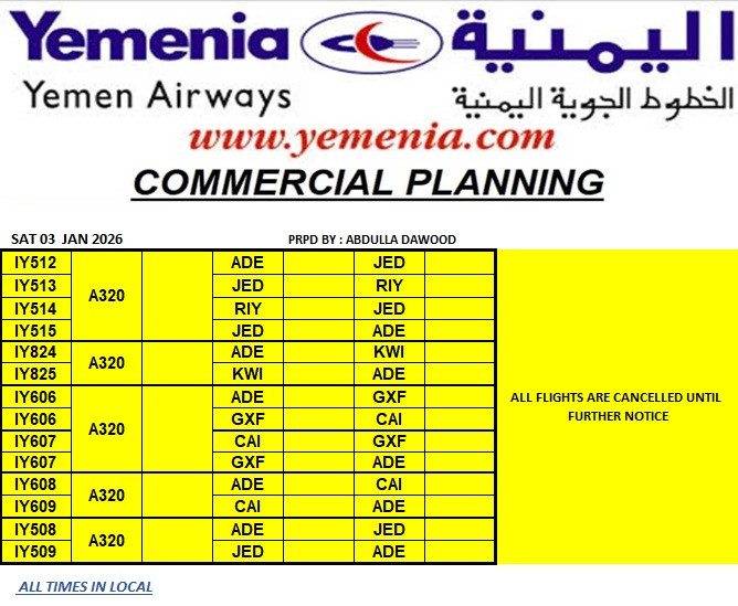 وأشارت اليمنية إلى أن أي مستجدات أو تغييرات سيتم الإعلان عنها عبر قنواتها الرسمية، داعية المسافرين إلى متابعة الإشعارات بشكل مستمر.