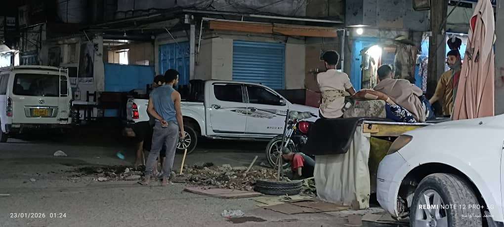 تجري في هذا الأثناء أعمال حفر وتخريب للشارع الاسفلتي في قسم D في شارع مراكش بمديرية الشيخ عثمان بعدن.
