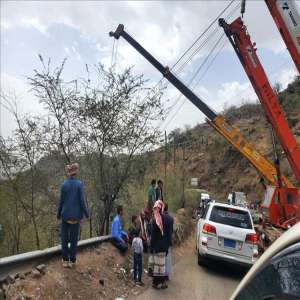 باشرت فرق مرور محافظة أبين، اليوم، عمليات انتشال القاطرة التي سقطت يوم أمس في نقيل الركة، في حادث أث...