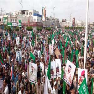 ​لم تغب رايات المملكة العربية السعودية عن المشهد، بل كانت العنوان الأبرز؛ حيث أكد المشاركون من خلال هتافاتهم ولافتاتهم أن التدخل السعودي منذ عام 2015 لم يكن عابراً، بل هو الركيزة الأساسية التي حالت دون سقوط البلاد في دوامة الفوضى الشاملة. وثمن المحتشدون الجهود السعودية الدؤوبة في: