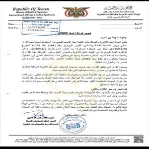 أفادت الهيئة العليا للأدوية والمستلزمات الطبية في العاصمة المؤقتة عدن، في تعميم حديث، بتشديد الرقابة...