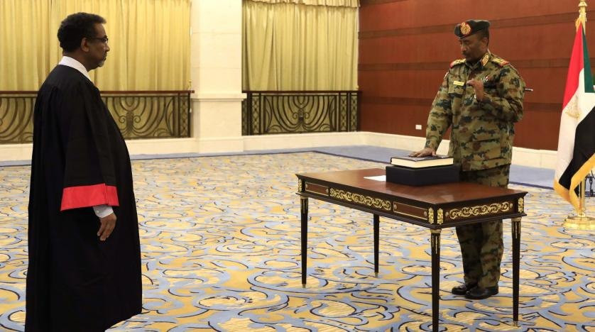 أدى الفريق أول عبد الفتاح البرهان ، اليوم الاربعاء ، امام رئيس القضاء ،اليمين الدستورية رئيساً لمجلس السيادة الذي تشكل حديثا في السودان.