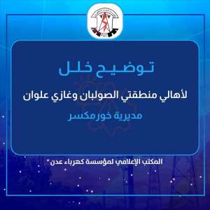 أوضحت المؤسسة العامة لكهرباء العاصمة المؤقتة عدن أن انقطاع التيار الكهربائي عن منطقتي الصولبان وغازي...