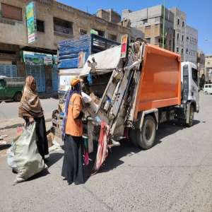 تنفيذ أعمال ترحيل النفايات في شارع العواضي بتعز