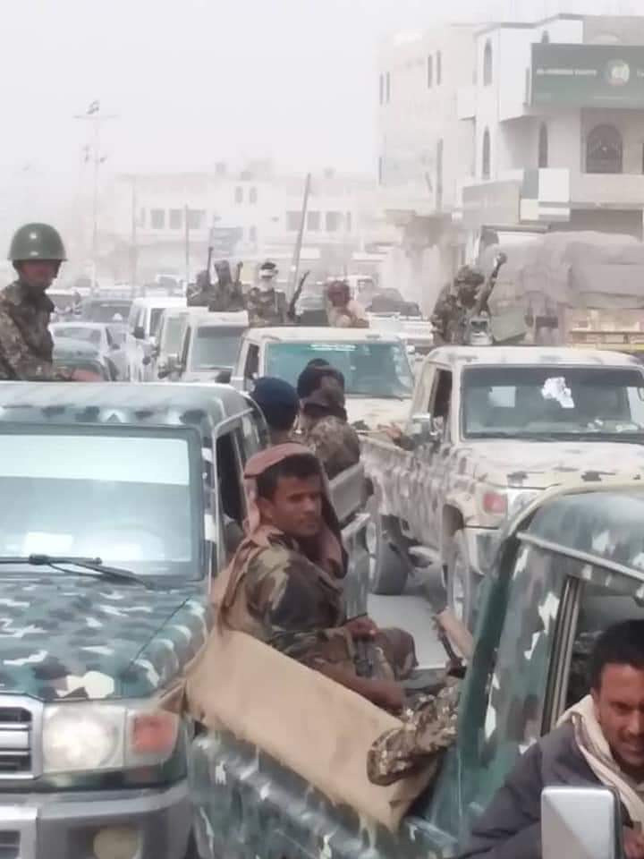 دفعت الحكومة الشرعية والمجلس الانتقالي بتعزيزات كبيرة الى محافظة شبوة صباح اليوم السبت