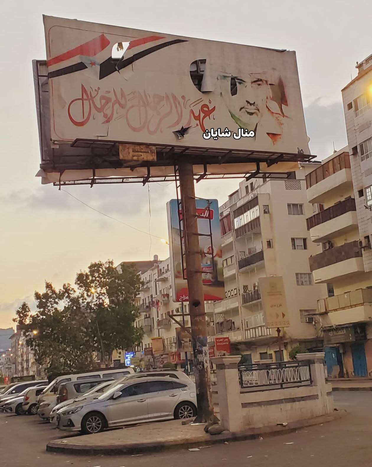 وبحسب مواطنون فانه تم تمزيق صورة الزبيدي عقب رفعها بساعتين بالمعلا.