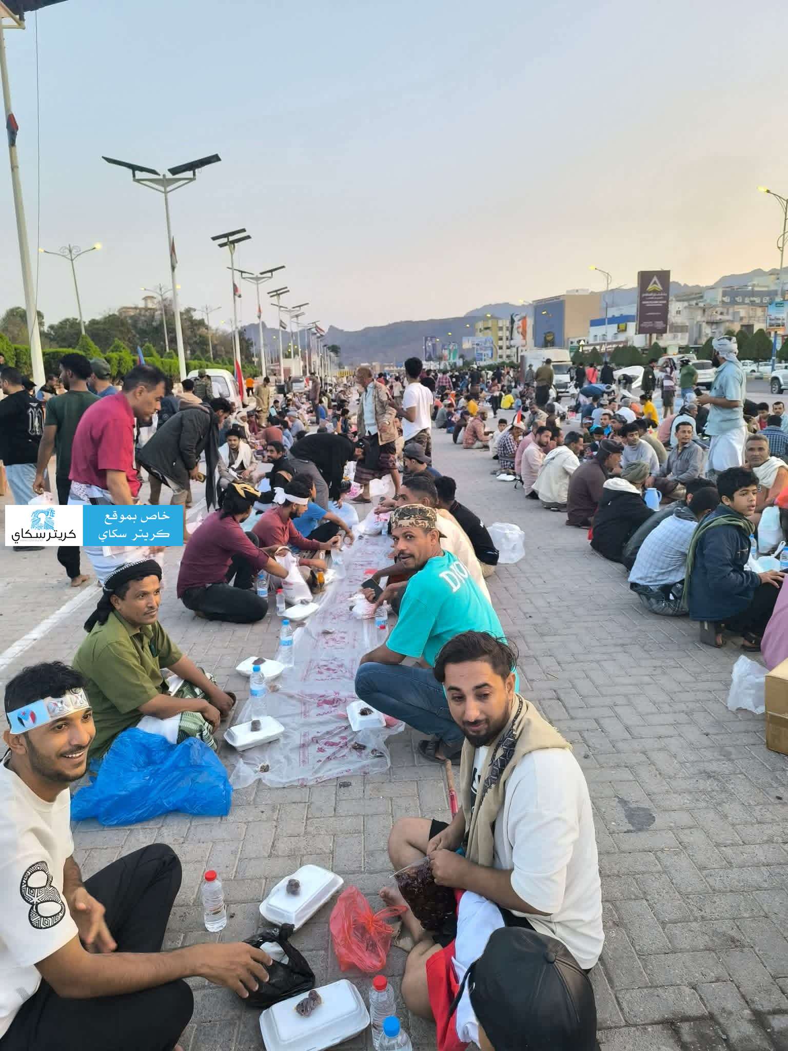 وأفاد مراسل "كريتر سكاي"، أن الفرق التطوعية واللجان التنظيمية بدأت بفرش المساحات المخصصة وتجهيز وجبات الإفطار، وسط توافد تدريجي للمواطنين القادمين من مختلف مديريات العاصمة عدن والمحافظات المجاورة.