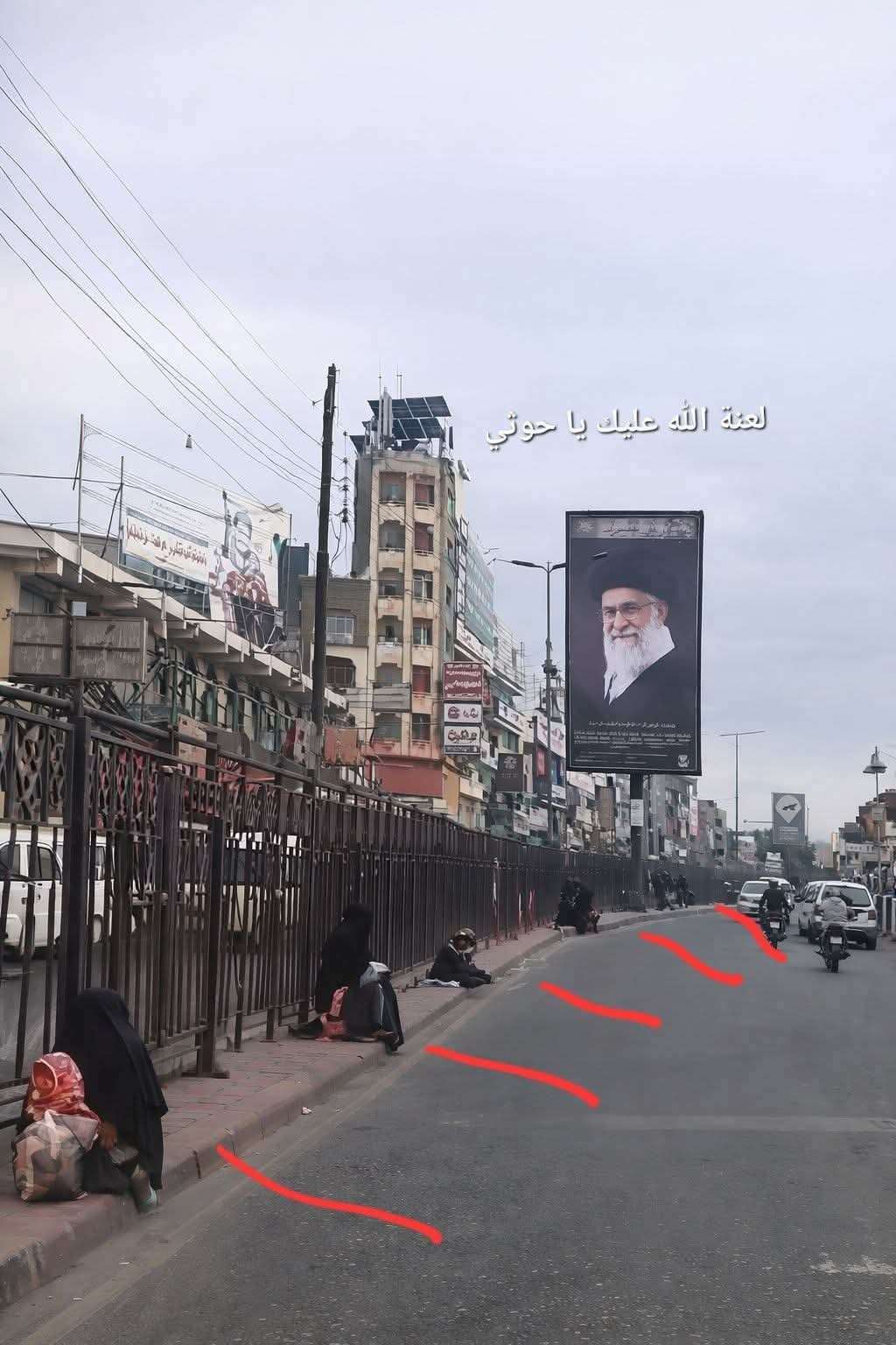 تداول ناشطون وصحفيون صورة مؤلمة من قلب العاصمة صنعاء، تعكس حجم التناقض والمأساة الإنسانية التي وصلت إليها البلاد؛ حيث تظهر الصورة لوحات إعلانية ضخمة تحمل صور المرشد الإيراني علي خامنئي، بينما تفترش نساء يمنيات الرصيف في انتظار من يجود عليهن بـ "فتات" يسد رمق جوعهن.