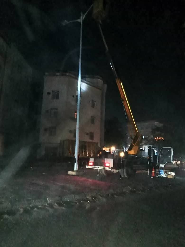 وتأتي هذه الأعمال في إطار تحسين مستوى الإنارة في الشارع، رغم ما تواجهه الفرق الفنية من صعوبات وعراقيل أثناء تنفيذ العمل.