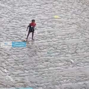 عاجل:طفل يلهو بمجرى الموت في تعز وسط اهمال من اسرته