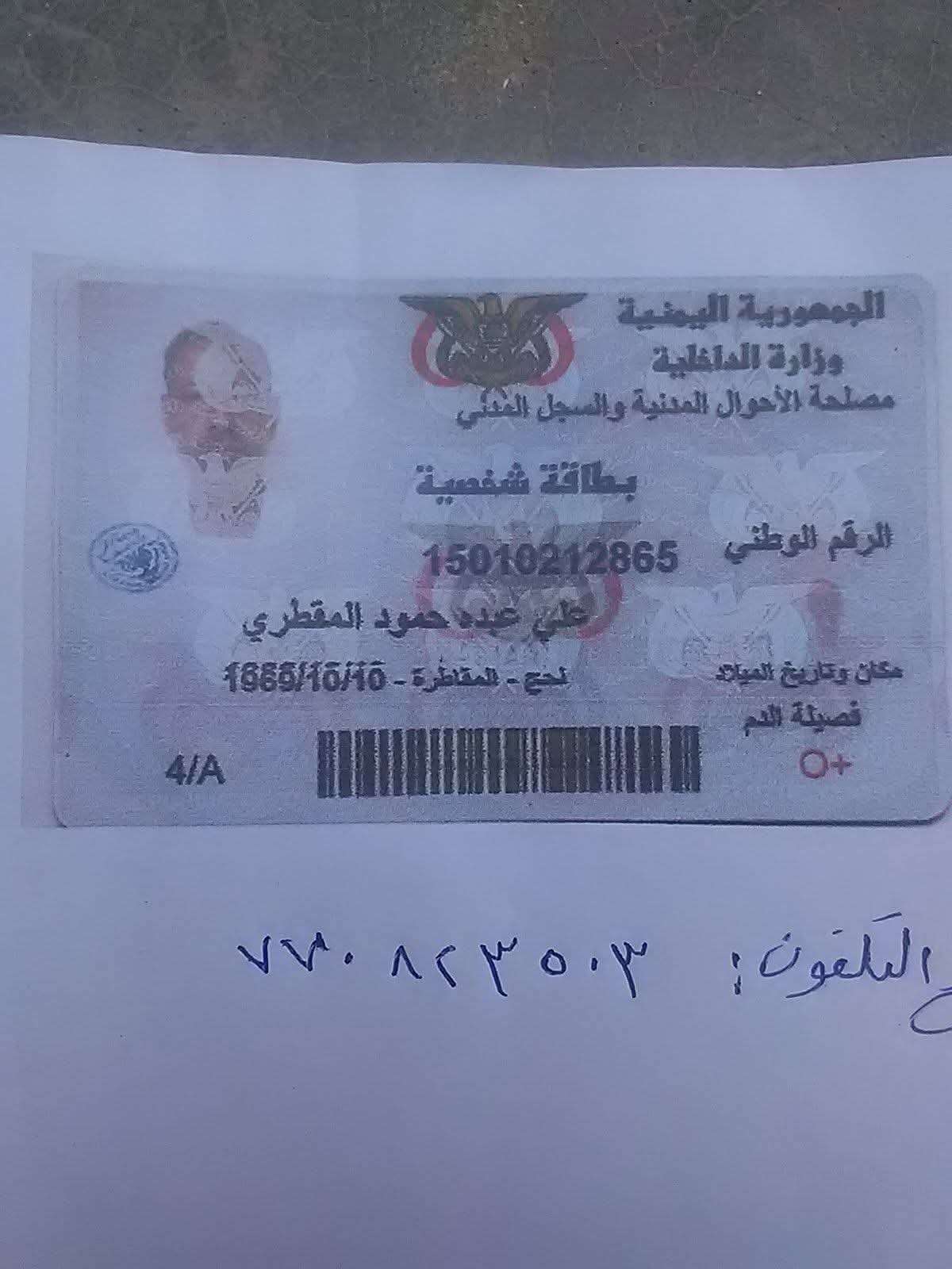 أفاد مواطن بفقدان بطاقة شخصية، داعيًا من يعثر عليها إلى التواصل عبر الرقم (770823503)، مقابل مكافأة مالية لمن يعيدها.