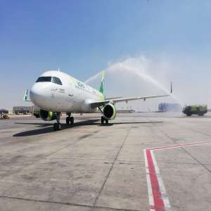شهد مطار القاهرة الدولي استقبال طائرة “المنصورة” التابعة لشركة طيران عدن، عبر رشاشات المياه (Water S...