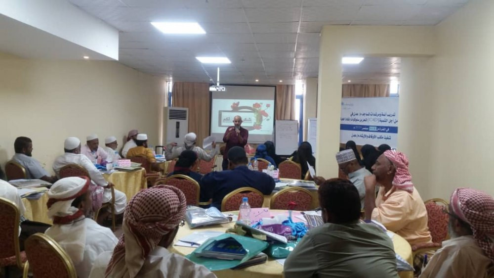 واستمرت الدورة ثمانية ايام لكافة مديريات عدن تحت عنوان التواصل من أجل التنمية (C4D )لتعزيز سلوكيات الحياة تحت إشراف وتنفيذ مكتب الأوقاف والإرشاد لعدن .