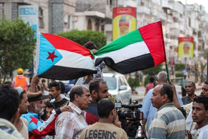وتقول الكاتبة إن العلم الجنوبي يرفرف في أرجاء المدينة وبجواره العلم الإماراتي بدل علم الجمهورية اليمنية الذي كان يرفع هناك بعد أن سمت الحكومة المدينة بالعاصمة المؤقتة لليمن وباتت تمارس أعمالها منها. يقول كثير من الجنوبيين إنهم كانوا غير سعداء بالوحدة اليمنية بعد حرب 1994 التي شهدت خروج قيادات الحزب الاشتراكي (الحاكم السابق لليمن الجنوبي) وتهميش أبناء الجنوب.