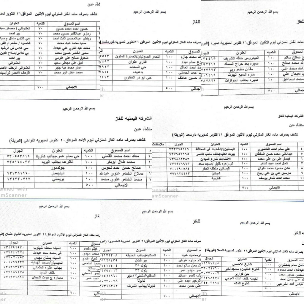 تحصل موقع كريتر سكاي على كشف توضيحي يبين محلات وكلاء الغاز التي سيتم تزويدهم يوم الاثنين الموافق 21 أكتوبر 2019 بالمادة عبر وحدة الغاز الحكومية بالبريقة.