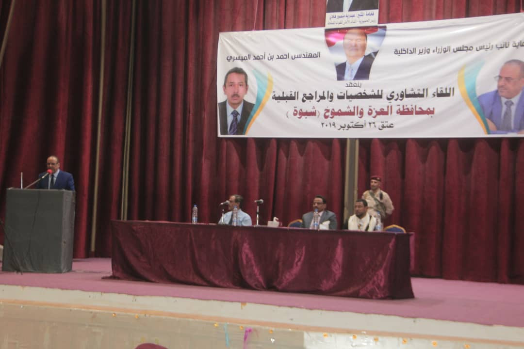 وجاء ذلك اثناء لقاءه ومعه وزير النقل صالح الجبواني المئات من الشخصيات الاجتماعية والاعيان والمسئولين من أبناء محافظة شبوة.