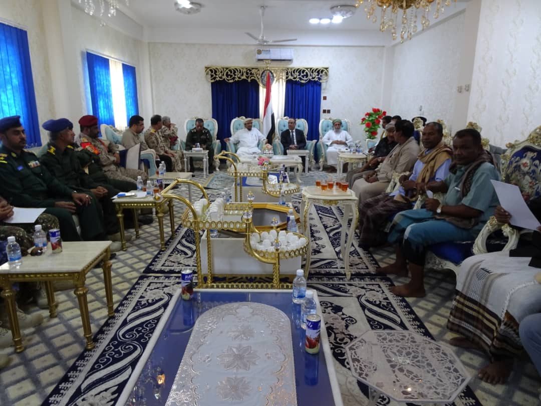 من جانبه، رحب الأمين العام للمجلس المحلي، بنائب رئيس الوزراء وزير الداخلية..مستعرضاً طبيعة الأوضاع بصورة عامة وتكامل العمل بين الوحدات الأمنية والعسكرية بالتعاون والتنسيق مع التحالف العربي..مطالباً بتقديم المزيد من الدعم والامكانيات للقوات العسكرية والأمنية.