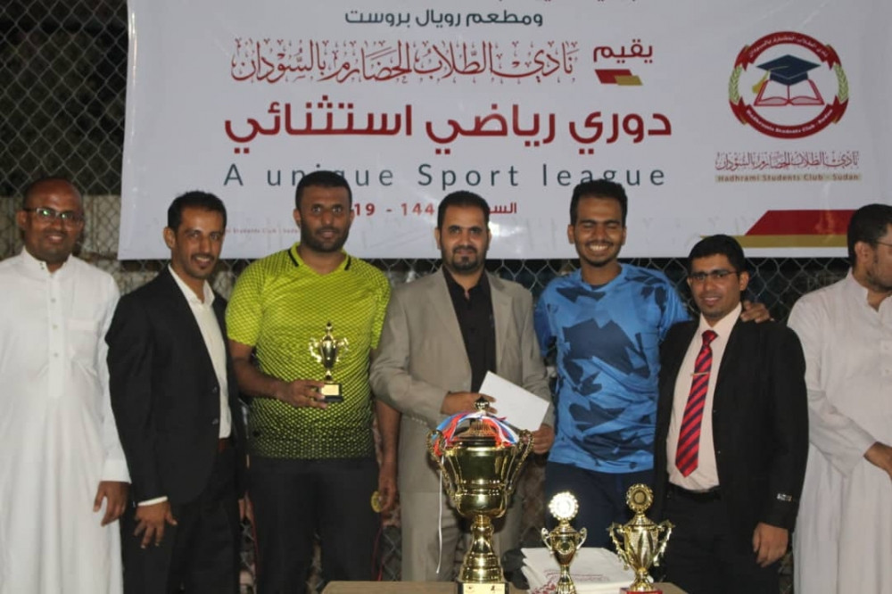 برعاية الشيخ/ عبد الله أحمد بقشان - رئيس مجلس أمناء مؤسسة حضرموت والشيخ/ جمال عبدالقادر باجمال - مالك مطاعم رويال بروست بالخرطوم حفظهما الله اختتم نادي الطلاب الحضارم بالسودان فعاليات الدوري الرياضي الاستثنائي الخميس، 21 نوفمبر 2019م بملاعب الملز للخماسيات بالعاصمة السودانية الخرطوم وكان تحت شعار ((البطولة الاستثنائية)).