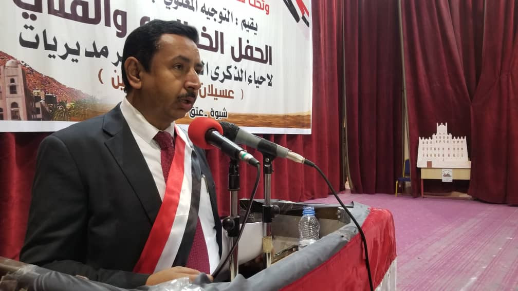 قال محافظ محافظة شبوة محمد صالح بن عديو في الذكرى الثانية لتحرير بيحان: السلام على أرواح الشهداء الميامين الغائبة عنا أجسادهم والحاضرة بيننا أرواحهم.