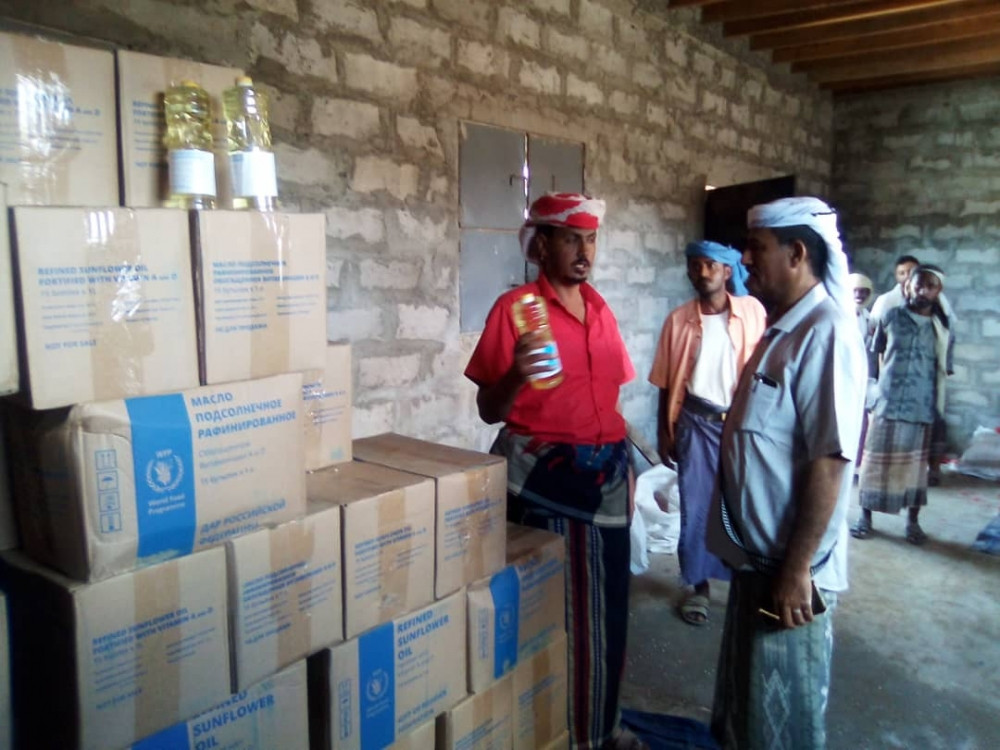 رافق مدير عام احور العقيد احمد مهدي العولقي تدشين توزيع السلال الغذائية الشهرية التي يتم توزيعها من قبل منظمة كير العالمية قيادة اللجنة المجتمعية المشرف الرئيسي على توزيع السلال الغذائية الشهرية للمستفيدين باحور
