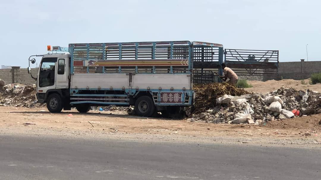 قام سائق دينا بسكب سماد واعلاف الاغنام في منطقة كالتكس بعدن.