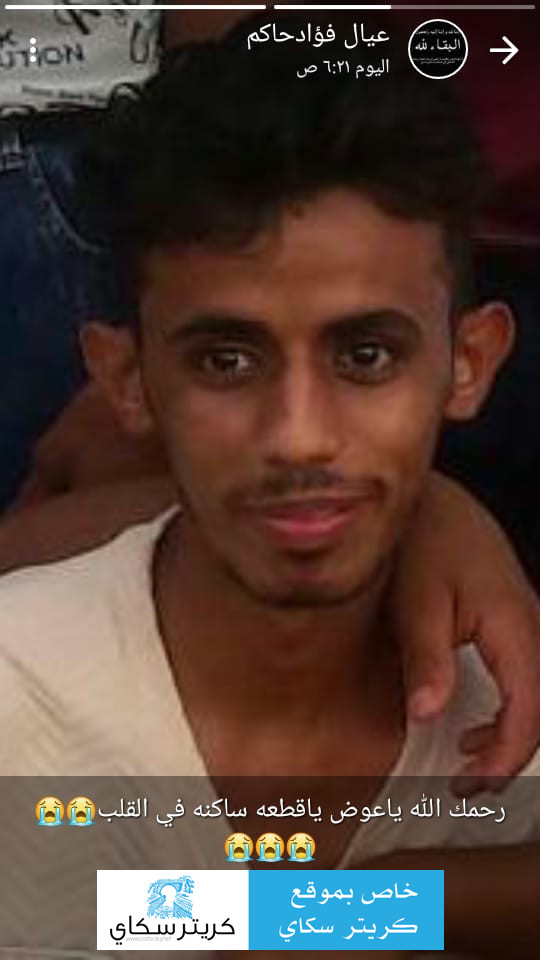 وقال مقربون ل كريتر سكاي ان الشاب عوض حسين حاكم توفي جراء اصابته الخطيرة.