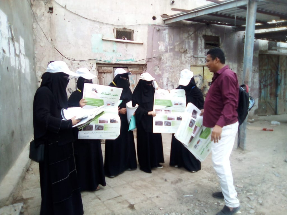 بتوجيهات من مدير عام مكتب الصحة العامة والسكان الدكتور عارف عياش وباشراف مديرة إدارة التثقيف والاعلام الصحي في المحافظة الاستاذة ابتسام احمد المصلي وبتنسيق مع مديرمكتب الصحة العامة في مديرية الحوطة الاستاذ عبدوه جعفر السقاف