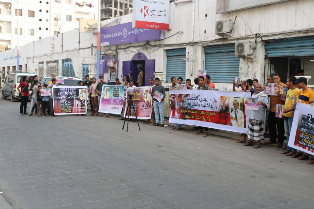 طالبت الوقفة الاحتجاجية التي نفذتها أسرة التربوي زكريا أحمد قاسم عصر اليوم الاحد في الشارع الرئيسي بمديرية المعلا بمدينة عدن بالكشف عن مصيره وإطلاق سراحه وتمكينه من حقوقه القانونية.