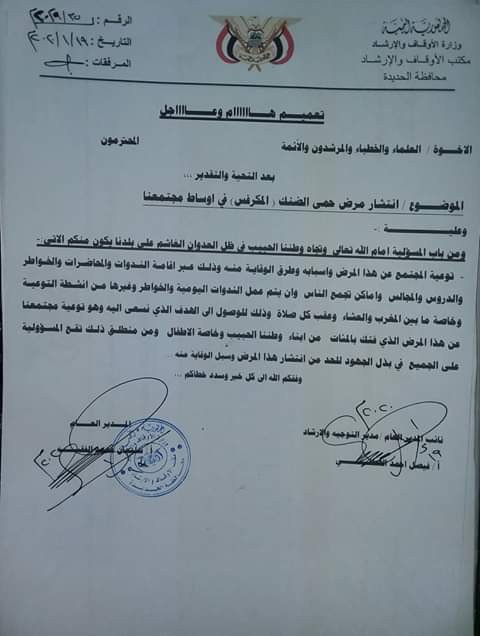 استغرب مصدر في مكتب حقوق الانسان بمديرية الجراحي محافظة الحديدة من تعميم صادر عن مكتب الصحة بالمحافظة.