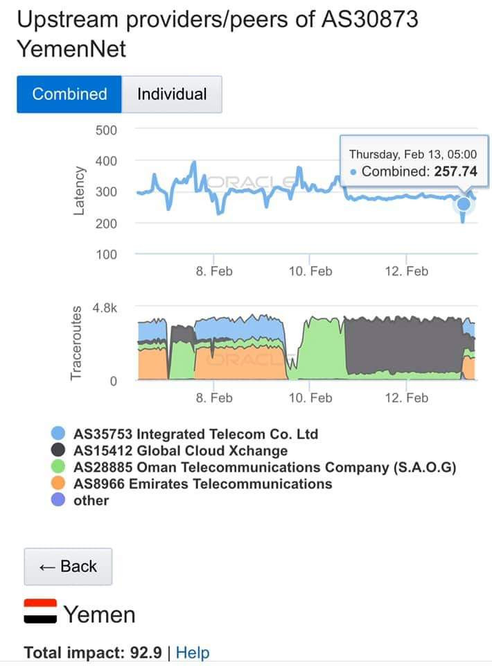 وقال المهندس فهمي الباحث رئيس جمعية الانترنت:نستطيع القول بأن حالة الإنترنت اليوم أفضل وخيرا ما فعلته تيليمن باستعادة القنوات الإسعافية من الإتصالات الإماراتية والمتكاملة السعودية.