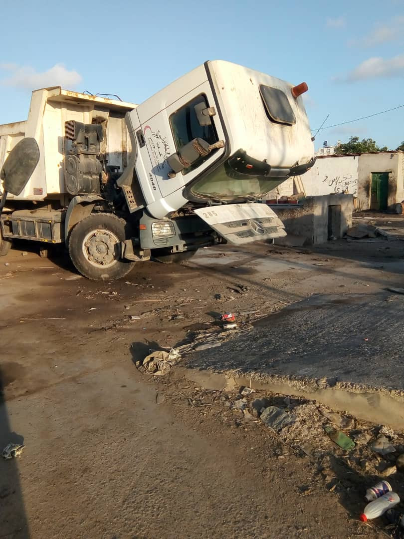 وقالوا ان اغلب آليات نقل القمامة تسلموها في 2016م من الهلال الأحمر الإماراتي وبلغ عددها (4 قلابات مرسديس اكتروس أصبحوا خارج الخدمة , 10 فرامت دينا , 4 فرامات كبير سكس.