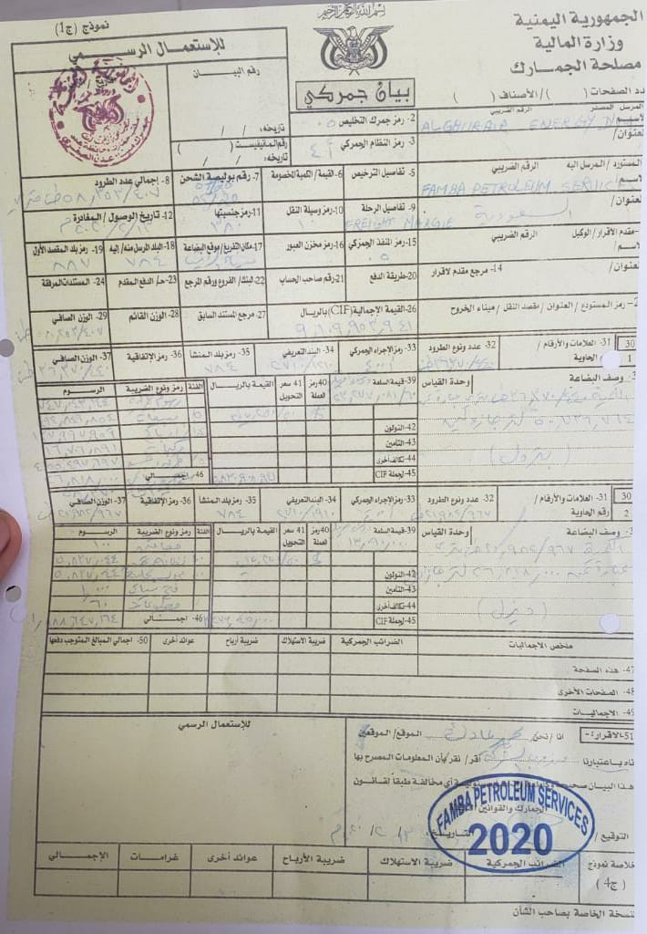 وقالت الشركة أنها قد استوفت كافة الإجراءات القانونية من قبل الجهات المعنية في الدولة ودفعت الرسوم الجمركية حيث قامت بتوريد (مليار وثمان مائة وثمانية وثمانون مليون ريال) إلى حساب مصلحة الجمارك في البنك المركزي بتاريخ "١٩ فبراير ٢٠٢٠م" , مؤكدة التزامها بإيداع مبيعات الشحنة لدى البنوك أو المصارف المعتمدة بنظر البنك المركزي اليمني ليتم معاينتها.