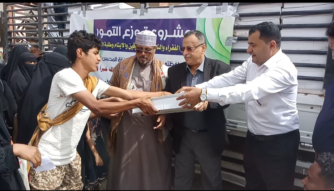 دشنت مؤسسة الشوكاني لرعاية الأيتام والأعمال الخيرية بمحافظة عدن ، مشروع توزيع التمور للفقراء والمحتاجين والمعاقين والأيتام وطلبة العلم في محافظات عدن ولحج وأبين وتعز والضالع ، بدعم من مصنع التميز للتمور بمنطقة القصيم بالمملكة العربية السعودية.