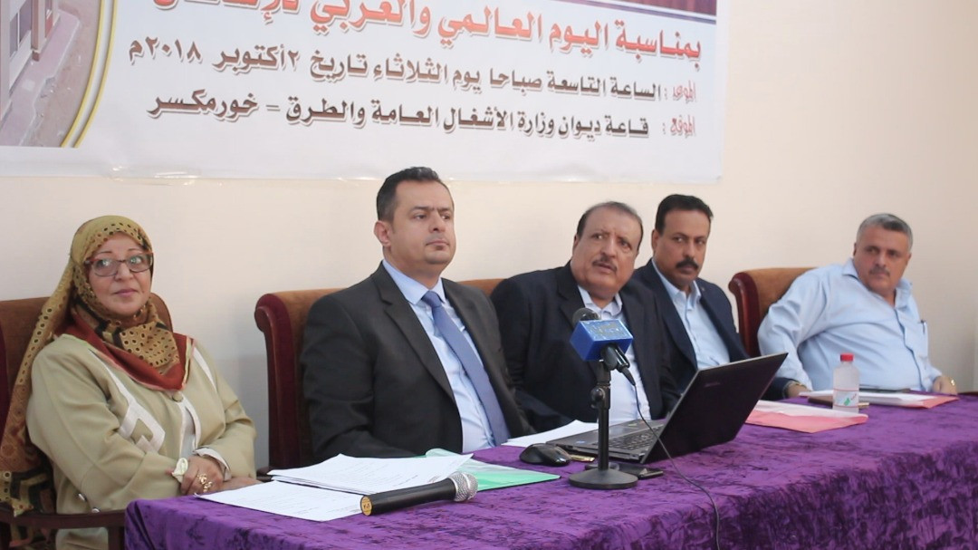 افتتح صباح اليوم الدكتور/ معين عبدالملك سعيد وزير الاشغال العامة والطرق بالعاصمة عدن ورشة العمل الخاصة بالتنمية الاسكانية في الجمهورية اليمنية بمناسبة اليوم العالمي للاسكان بحضور اللواء / على ناصر لخشع نائب وزيرالداخليةومحافظ محافظة الضالع اللواء/ على مقبل صالح و وكلاء وزارة الاشغال العامة ومدراءعموم الاشغال والاراضي وممثلي الجمعيات السكنية والنقابية .