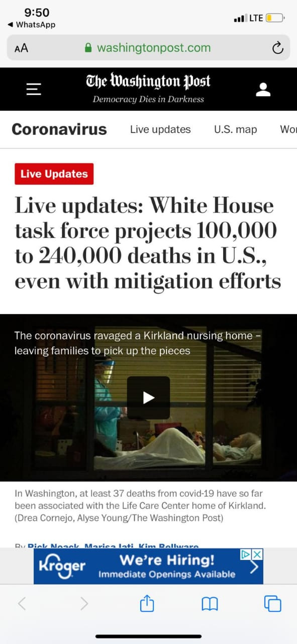 قدم الفريق العامل للبيت الأبيض المعني بفيروس كورونا الثلاثاء، صورة قاتمة عن الوضع الذي ستصل اليه للولايات المتحدة الأمريكية خلال الشهرين المقبلين، وذلك رغم الجهود المبذولة التي تم اتخاذها للحد من انتشار فيروس كورونا، بما في ذلك تدابير الحد من التواصل الاجتماعي. وتوقع الفريق ان يتراوح عدد الوفيات جراء تفشي فيروس كورونا ما بين 100 الف إلى 240 الف أمريكي.